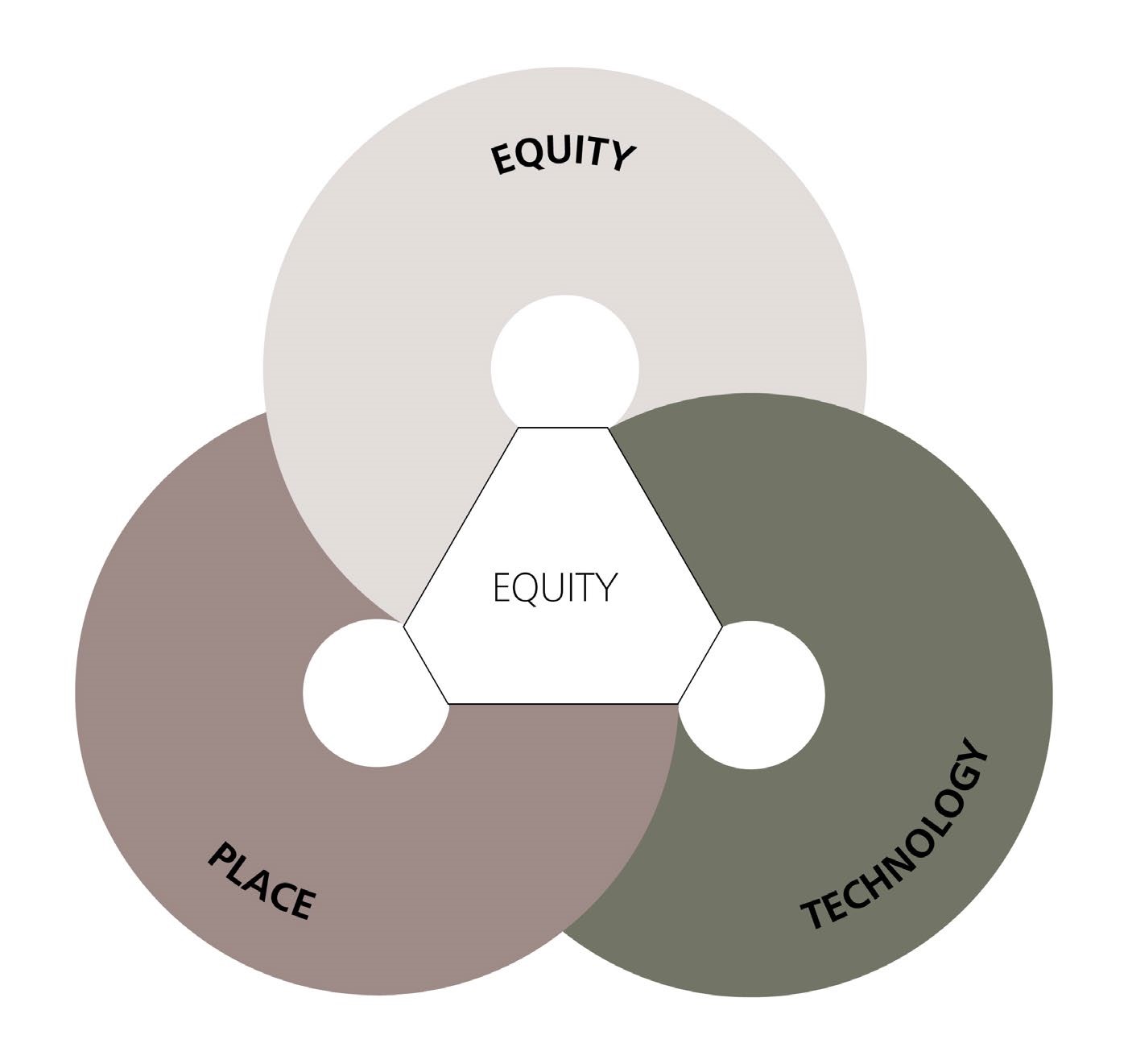 Digital Equity requires that we fully consider three aspects of collaboration: people, technology, and place. Examining the experiences of all participants through these three aspects may suggest opportunities to change behaviors, designs, or support systems to drive a more inclusive experience.