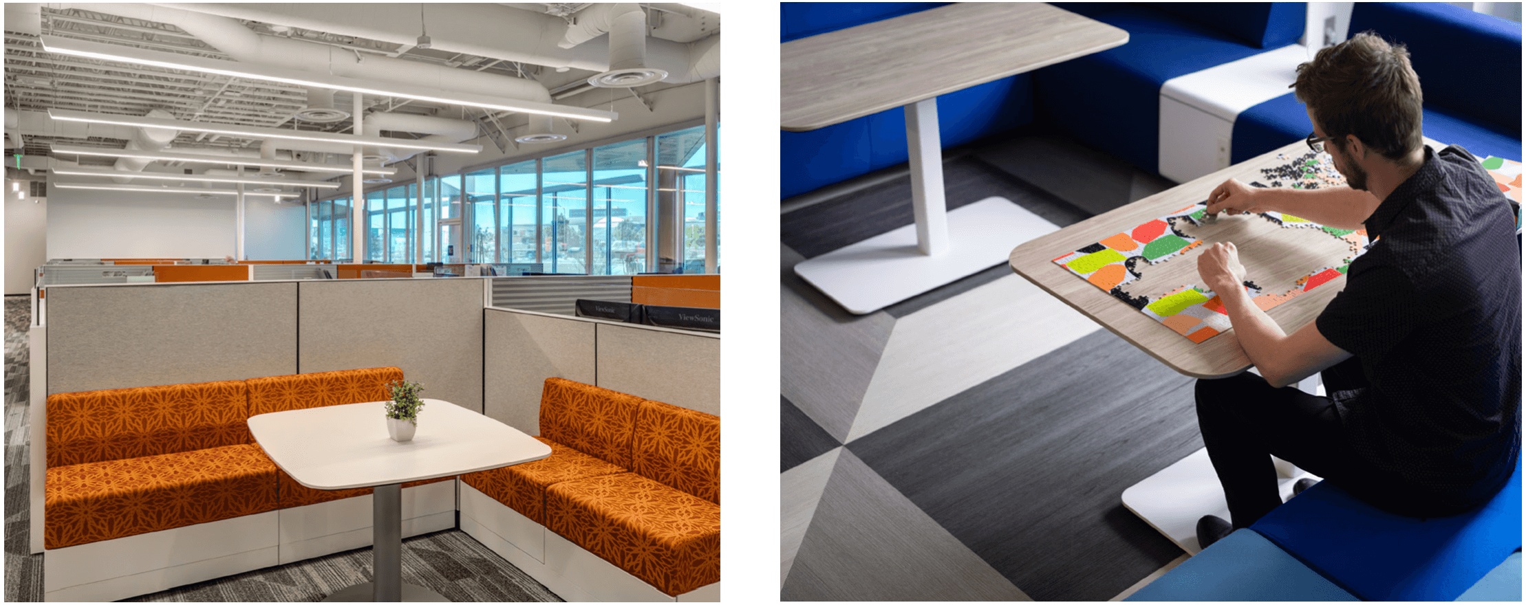 Greens, blues, and other nature-based colors are best used in focus areas for heads down or individual work. These colors allow users to regulate their emotions in high stress situations, allowing them to feel safe and balanced in their work environment.