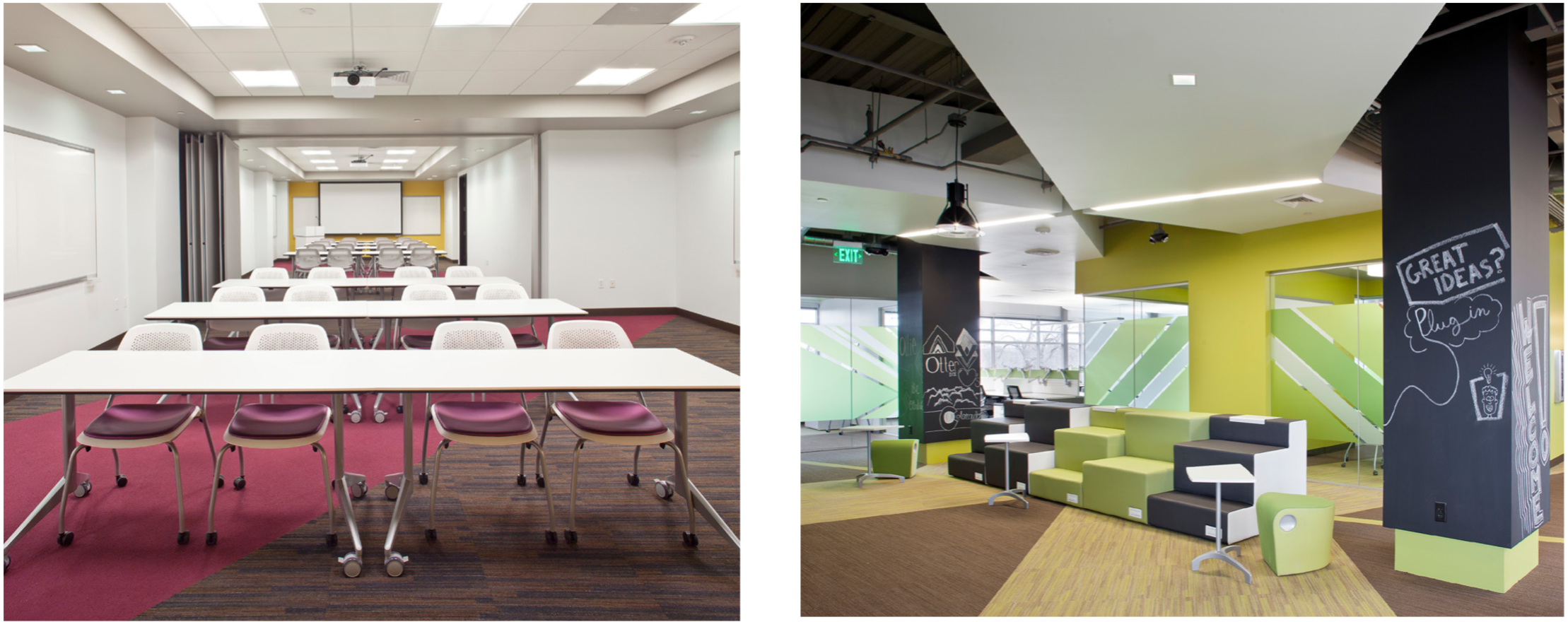 Certain colors benefit collaborative areas, while others can potentially be detrimental to the workplace. Yellow in low chroma hues is great to use in spaces for collaboration to promote engagement and communication between members, encouraging processing and stimulation in the brain. On the other hand, the use of red in common areas can cause spikes of aggression between coworkers.