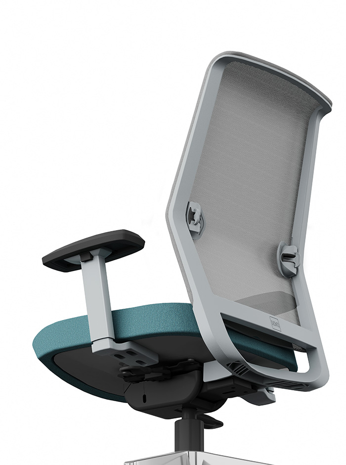 Inspired by automotive styling and angular architectural trends, the No. 16 chair features a modern, chiseled aesthetic. Its thin, flat back frame and angular components offer a refined look. Customizable options for the frame, mesh, and upholstery ensure a tailored experience, while the streamlined design reduces clutter and complexity for easy use.