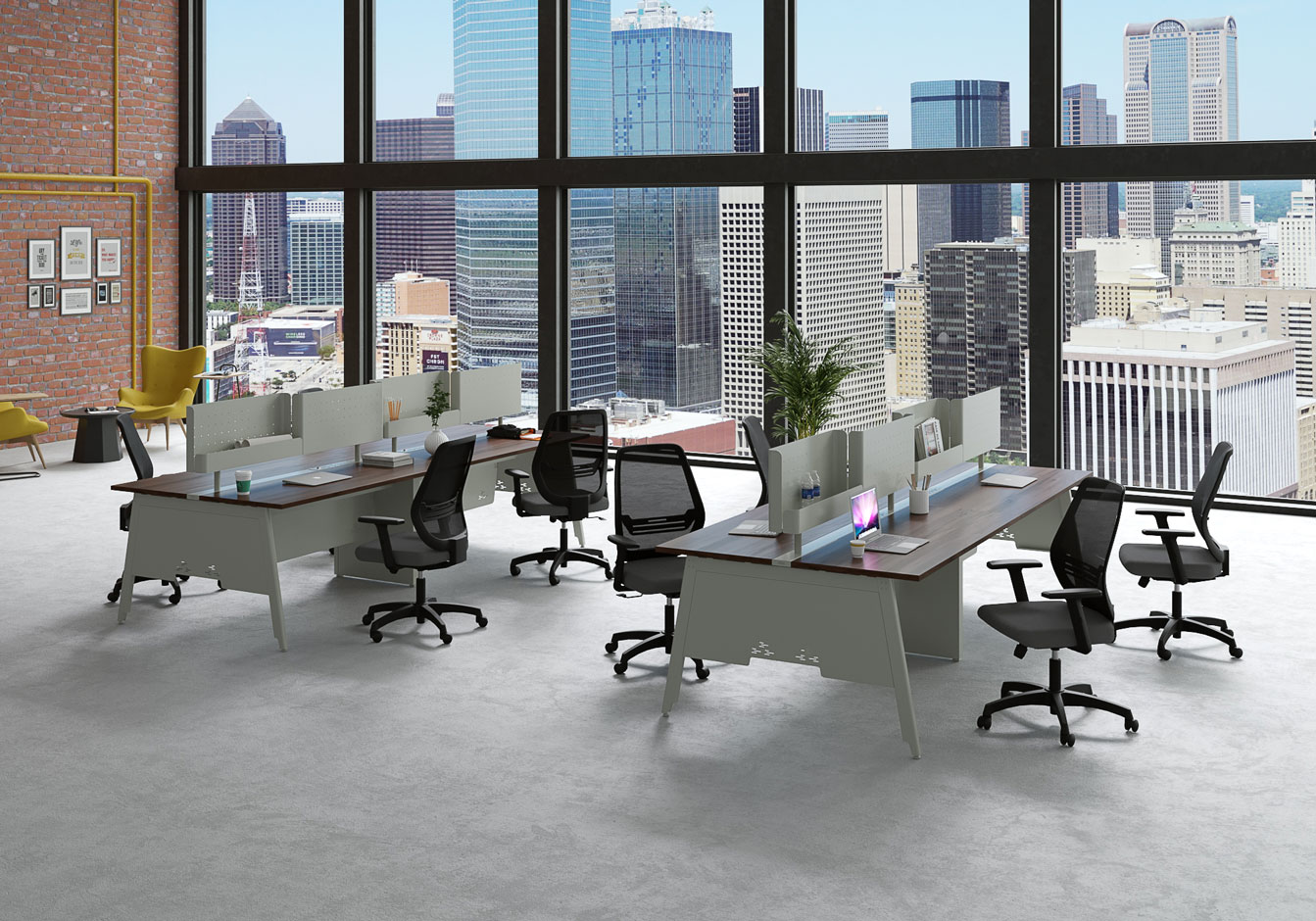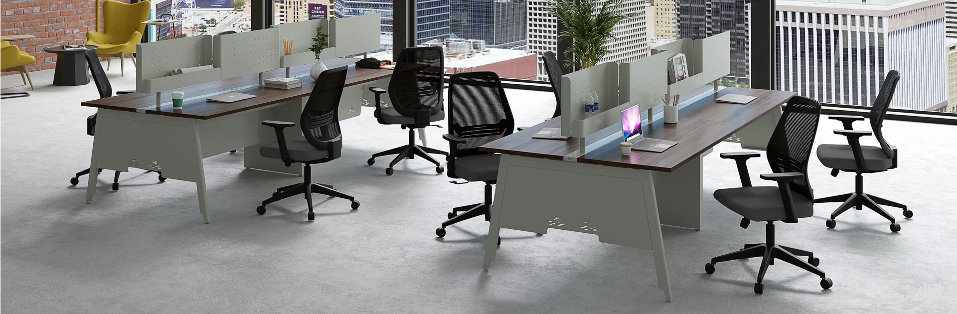 The Avail Benching solution provides personal space while facilitating convenient and efficient communication. Avail is a highly flexible system that can be easily assembled and disassembled, transitioning from a focused workspace to a collaborative workspace.