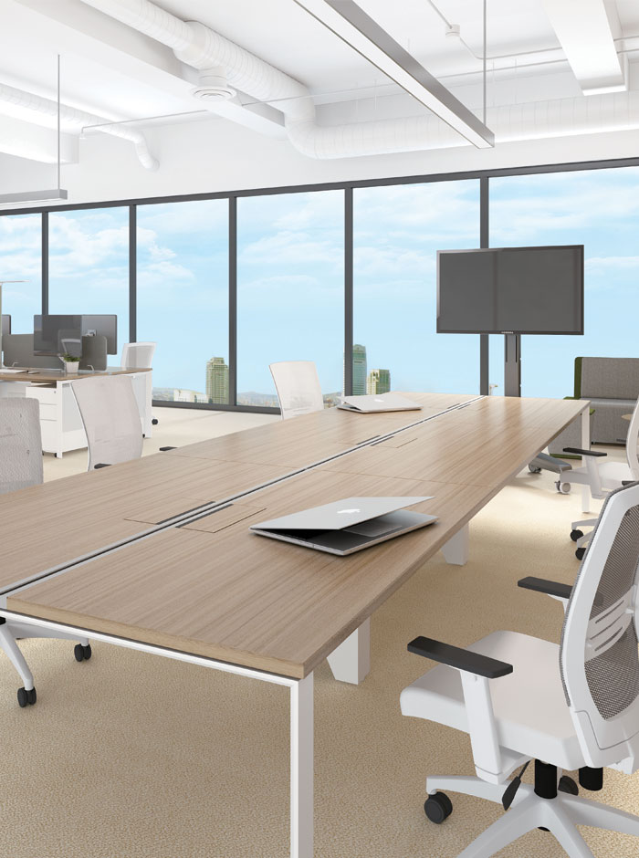 The Avail Bench, with its standard components, can easily change from a workstation to a conference table. Now, you can instantly meet your evolving needs as your business grows.