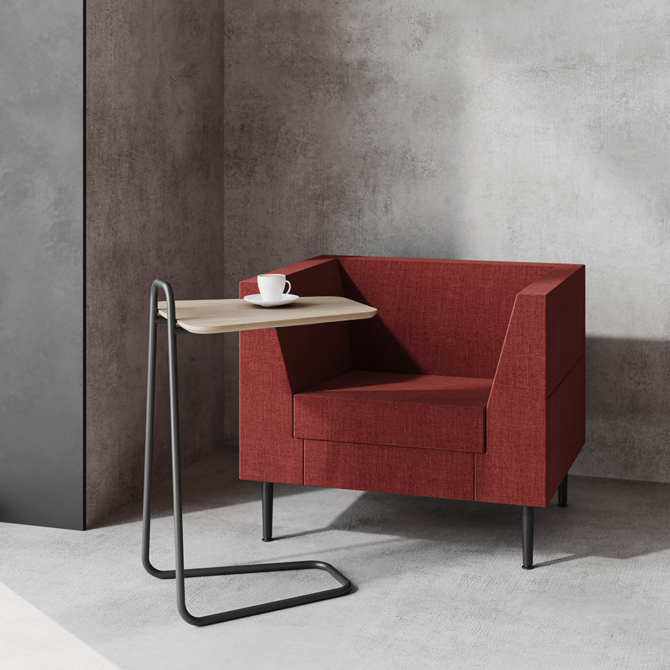 The Meta Carry occasional table, with its organic-shaped surface at sofa-seated eye level, supports easy laptop and device screen sharing. Its compact handle allows for effortless mobility, while the heavy metal base ensures stability. The Meta Carry is not only functional but also adds a touch of style and practicality to your collaborative environments.