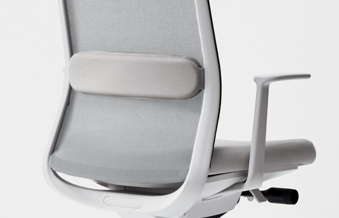 Lumbar support with high cushioning and high pressure distribution. The height can be adjusted according to individual differences in spine shape.
