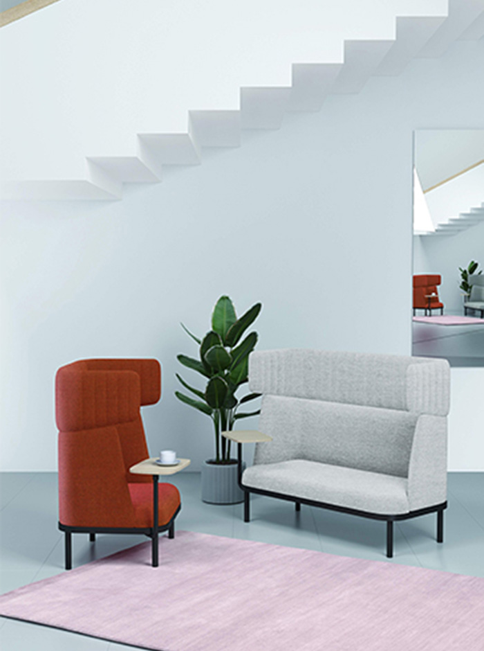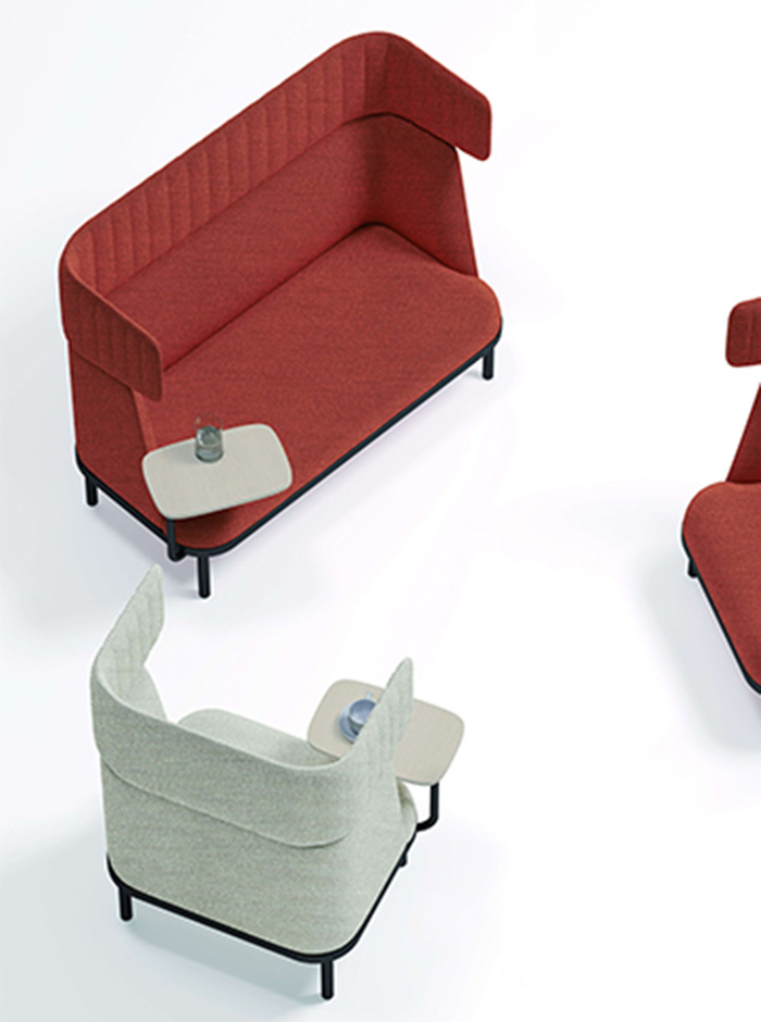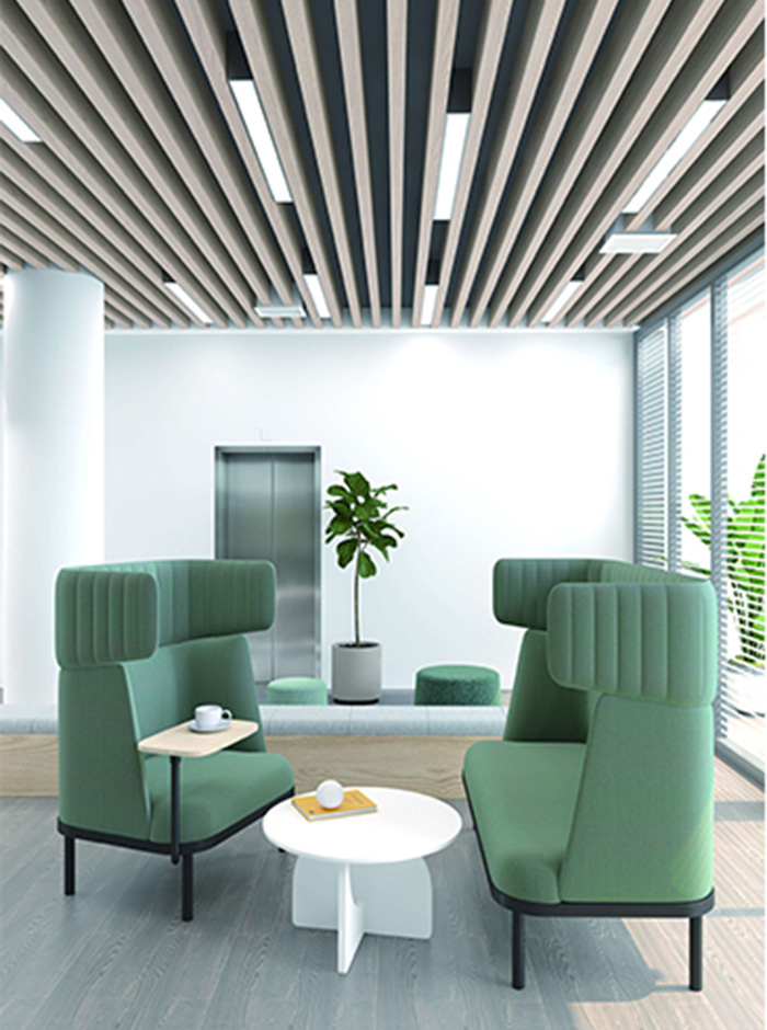 The Nova sofa combines the privacy requirements of public spaces with the acoustic characteristics of the environment. By enclosing three sides, it creates an excellent private area for offices, leisure, and negotiation. The fabric of the headrest area is processed using embossing technology, providing a comfortable, wrapping sensation.