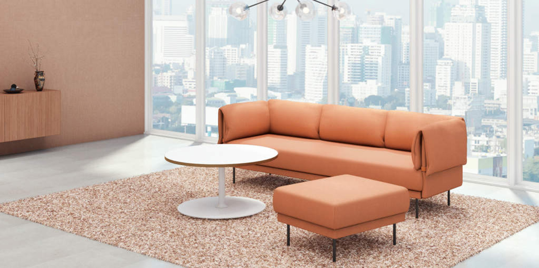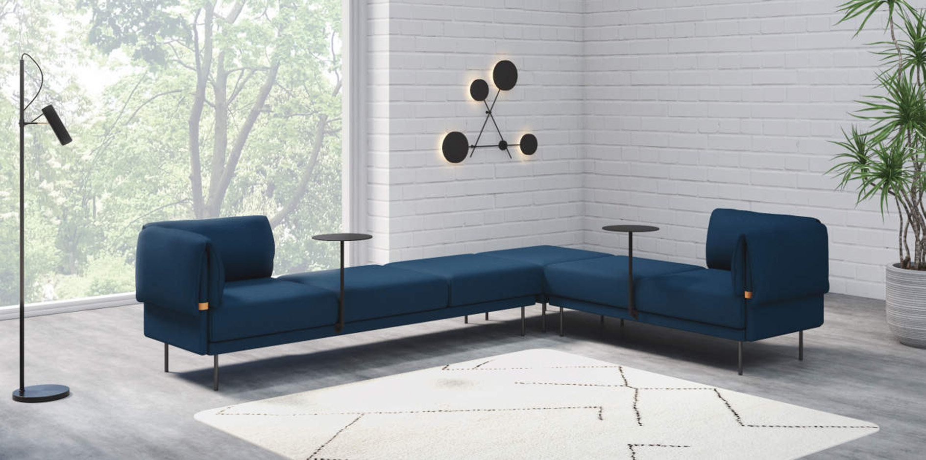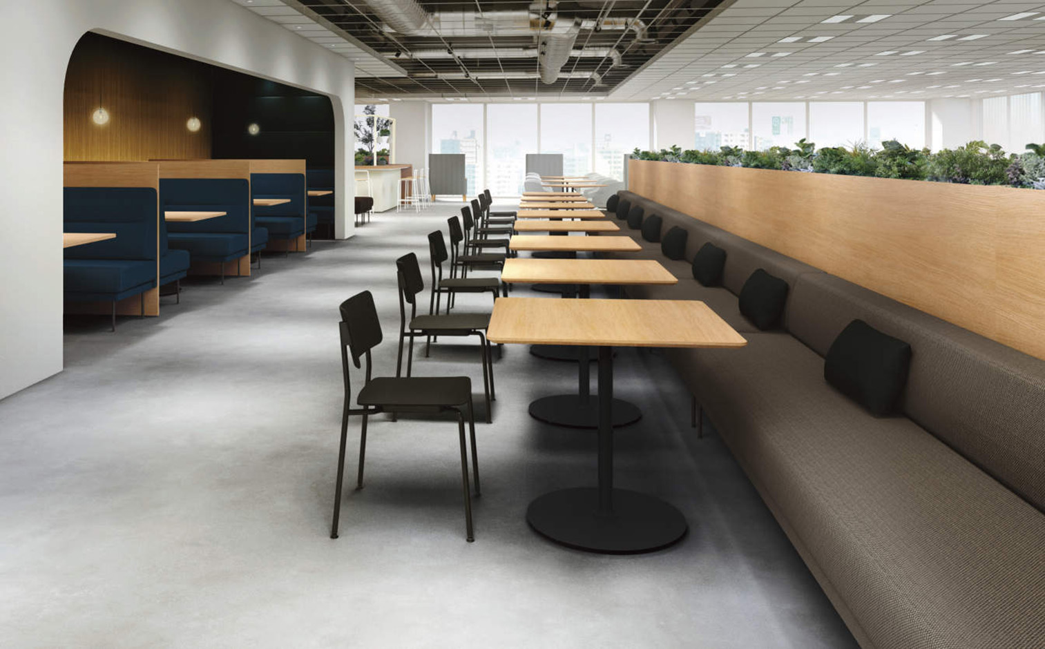 The design allows for easy customization and maintenance, with interchangeable backrests, armrests, and covers to refresh the look and extend product life. Adjustable seat height accommodates both work and relaxation needs without additional parts. An optional plant box enhances the environment, adding comfort and visual appeal.