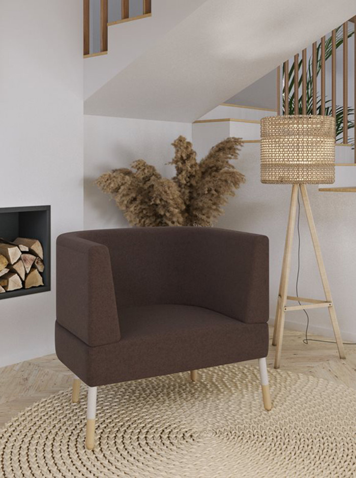Introducing the Tepee Lounge Chair, a standout element of the Tepee modular system. Designed to bring coziness and functional character to any space, this lounge chair is perfect for creating a welcoming environment in waiting rooms, relaxation areas, or individual workspaces. With its versatile design and superior comfort, the Tepee Lounge Chair seamlessly integrates into any setting, enhancing both aesthetic appeal and usability.